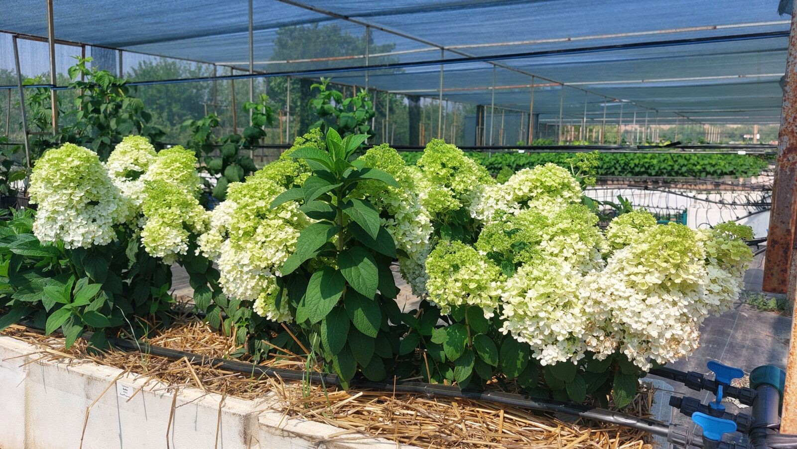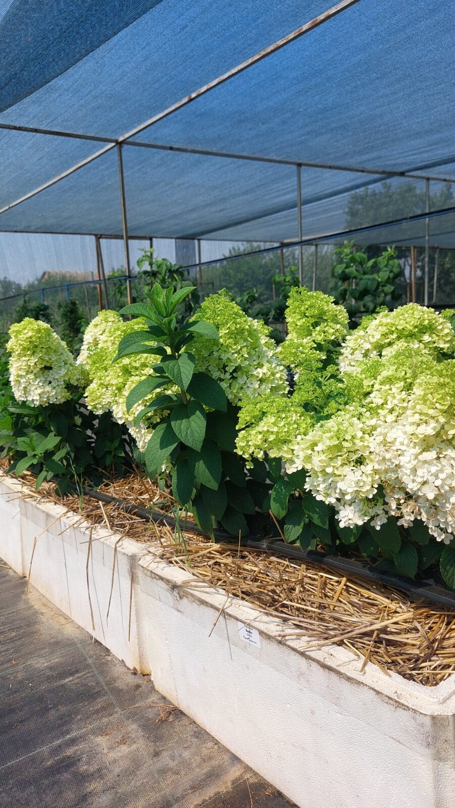 Куст высотой 0,6-0,8 м, округлой формы. Зацветает с конца июня до конца сентября. Соцветия огромные, полностью заполняют куст сверху, как ажурной вуалью. Цветение продолжительное и обильное, прочные вертикальные побеги хорошо удерживают шапки цветов. Цветки белые стерильные, в конце цветения слегка розовеют.